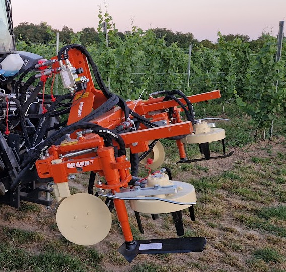 Dzięki napędowi hydraulicznemu pielnik Braun oferuje płynną regulację głębokości i pozycji roboczej narzędzi, co pozwala operatorowi precyzyjnie ustawić parametry pracy odpowiednio do warunków polowych. Hydrauliczna kontrola zapewnia również łatwość manewrowania i możliwość szybkiej adaptacji do zmian w terenie – kluczowe przy pracy blisko korzeni winorośli.